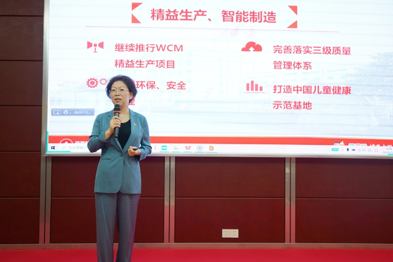 刘景萍董事长引用席大大总书记在2022年博鳌亚洲论坛上的重要讲话勉励全体与会人员,在海南自贸港建设的机遇期,认真学习贯彻落实省第八次党代会精神,坚持党建引领企业发展,将尊龙时凯药业集团打造成中国儿童健康领军企业。